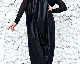 Black Latex Jumpsuit / Black Plus Size Jumpsuit / Loose Funky Jumpsuit TJ28 / URBAN MUSE