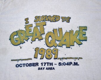 1989 I Survived The Great Quake T-Shirt Size L Tee Shirt Baseball Earthquake Vintage San Francisco