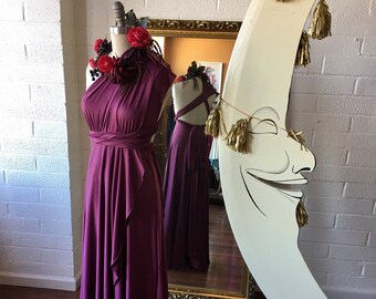 Sea Gypsy Berry- Tulip Cut Long Maxi Dress -Octopus Infinity Convertible Wrap Gown~ Bridesmaids, Bohemian, Maternity, Prom