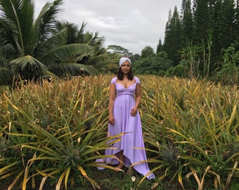 Sea Ranch Wisteria- HIGH/ LOW CUT Long Octopus Infinity Wrap Gown- Lavender Maxi Dress