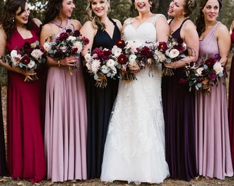 Mismatched Bridesmaids~ Long Maxi Octopus Convertible Wrap Gown- Mismatched Bridesmaids, Wedding, Maternity, Plus Size, Bespoke -