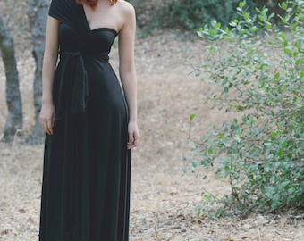 Black Coral Long Maxi Infinity Dress-Long Octopus Infinity Wrap Gown- Bridesmaids, LBD, Cocktail Dress