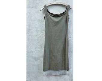 Grey lace dress - naturally dyed alternative wedding slip minidresses sexy slinky sheath feminine organic hemp earthy bohemian wytch pagan