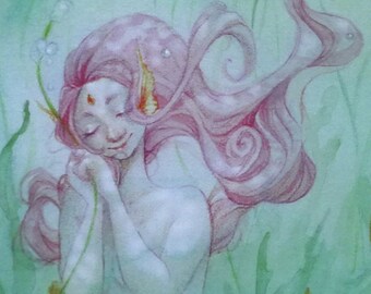 Acrylic painting on paper. Dream #5. Summer night. 7x 5"in