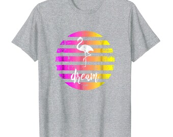 Flamingo Vintage Dream Summer Sunset Beach T Shirt