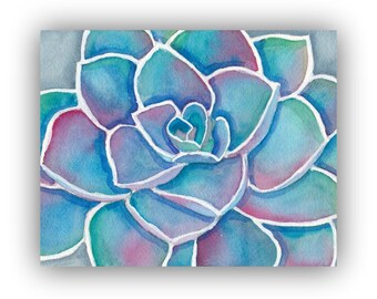 Succulent Watercolor Painting Print - Blue Echeveria Wall Art - Blue and Purple Succulent Illustration Watercolor Art Print, 8x10