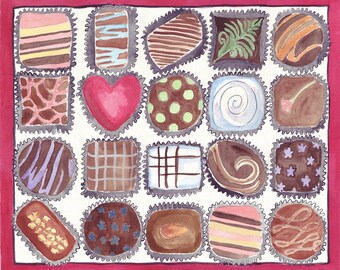 Watercolor Painting - Box of Chocolates Art - Food Illustration Watercolor Art Print, 5x7 Print