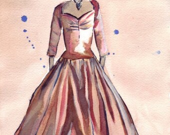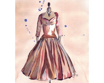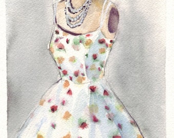 Print of my original watercolor painting of a gorgeous vintage dress.