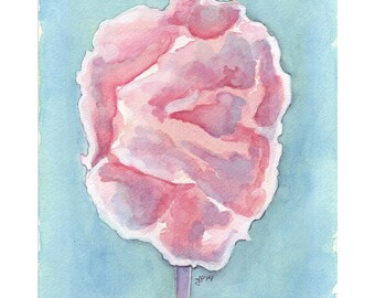 Cotton Candy Print - Pink Cotton Candy Watercolor Painting - Carnival Food Illustration Watercolor Painting, 8x10 Print