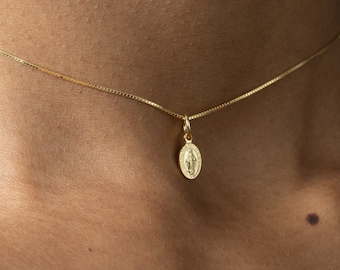 Tiny Miraculous Medal Necklace, Medallion Choker, Mary Virgin Pendant, Madonna Necklace, Gold Medallion Necklace Women, Religious Choker