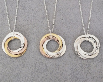 Circle Name Necklace Personalize Mother Day Gift Kid Name Necklace for Mom Russia Ring Name Necklace Family Necklace for Mother, Gift Women