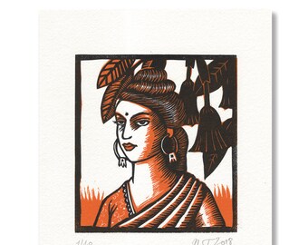 Linocut "Woman in orange sari" / Linocut "Woman in orange sari"