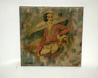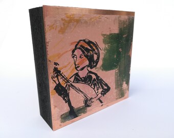 Assemblage "Woman With Instrument" on Copper Plate