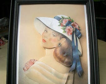 varnished frame 3D theme "woman with hat"