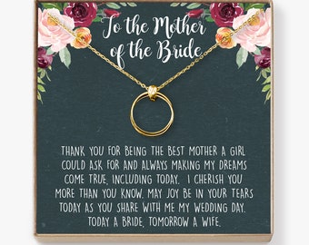 Mother of the Bride Gift Necklace: Wedding Gift, Bridal Party, Rehearsal Dinner, Woman of My Dreams, Parent of Bride, 2 Linked Circles