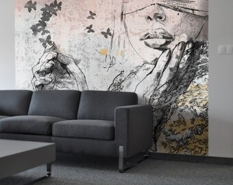 Arystyczna Wallpaper/mural "Woman with Butterflies"