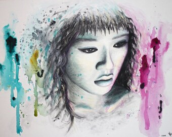 Acrylic on canvas 70 x 100 cm "Woman in purple-Petrol" Portrait 2