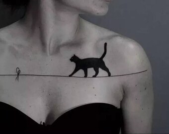 Cat tightrope temporary tattoo 21 x 6 cm