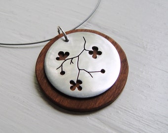 Sakura Branch Neckwire Necklace in Cherry Wood -- Modern Woods