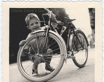 Digital Download: "Happy Boy With New Bicycle" 1950s Vintage Snapshot Photo