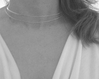 Well-Designed 5mm Wide Sterling Silver "C" Curve Collar Choker Neckwire Necklace, Handmade Choker/ Collar Necklace.