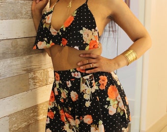 Floral shorts with tie combination