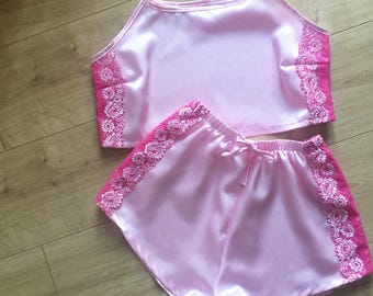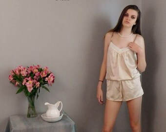 Silk pyjama set for women / High quality pyjama top and shorts / Women silk sleepwear, nightwear, loungewear and lingerie