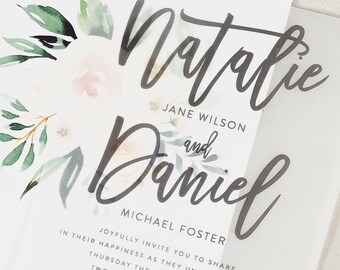 Wedding invitations, Vellum invitation calligraphy wedding invitation floral wedding invitation, black and white wedding invitation