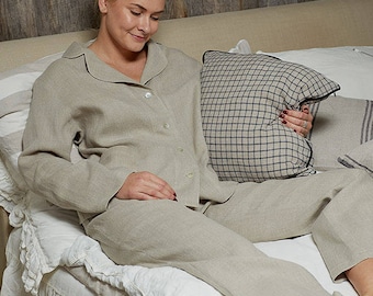 Linen PAJAMAS set, Grey women's homewear, Women's linen sleepwear, Stone washed linen pajamas, Linen PJ's, Organic linen pyjamas set