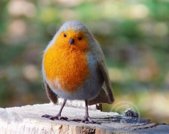 Needle felted bird. Needle felted animal. Little bird. Robin bird. Miniature. Wool Sculpture.