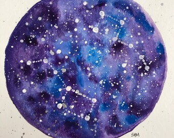 Big Dipper Constellation Painting - Galaxy, Night Sky, Stars, Original Watercolor, Astronomy, Gift for Her, Boho Art, Ursa Major, Boho Style
