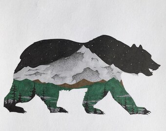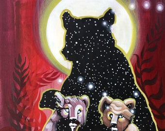 Ursa the bears - Whimsical, nightsky, childrens illustration. Big dipper, little dipper constellation art.