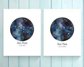 Constellation Print | Wall Art | Hanging Art | Ursa Major | Ursa Minor | Stars | Graphic Design