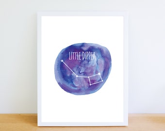 Big Dipper. Little Dipper. 8x10 Digital Print. Galaxy watercolor. Nursery print. Birthday Gift.