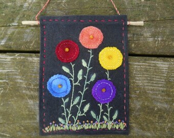 Rustic Folk Art, Rustic Decor, Rainbow Flower Wall Hanging, Flower Posy Art, Posies Embroidery, home decor - Made to Order