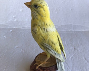 Vintage Royal Crown Bisque Porcelain YELLOW CANARY Figurine, 6.1"H x 4.5"W x 3.5"D - Hand-painted and Detailed Canary and Baby Bird
