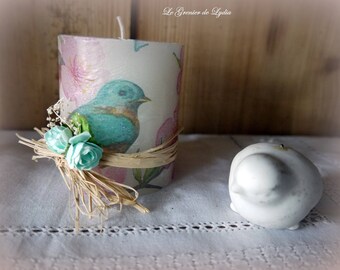 Candle decorated 8cms spring birds