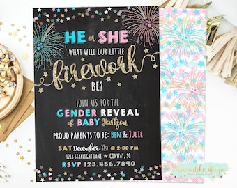 New Year's Gender Reveal Invite, Fourth of July, Firework Gender Reveal, Firecracker, Summer Gender Reveal, Fireworks, Reveal Invitation