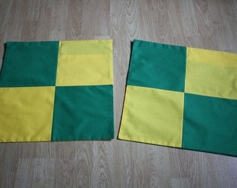 A pair of square envelope cushion covers- Norwich City Canary-style!