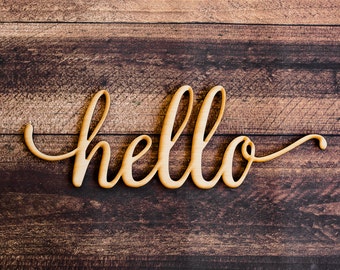 Hello Script Wood Sign -Wood Sign Art, Wooden Hello, Hello Sign, Laser Cut Wood Sign, Wood Wedding Decor, Cursive Hello, Greeting Sign