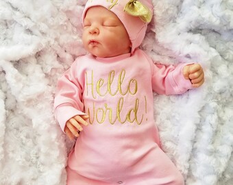 Baby Girl Coming Home Outfit Hello World Baby Girl Newborn Baby Girl Personalized Baby Girl Personalized Newborn Hat Baby Girl Gift