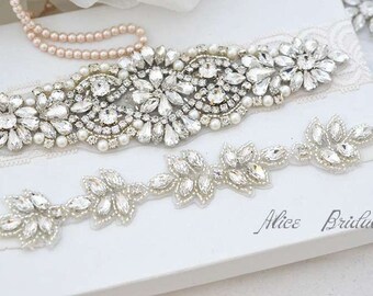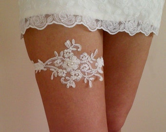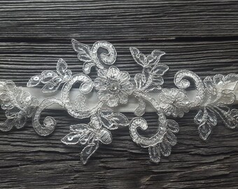 Wedding Lace GARTER, Beaded Lace Applique with Sequin Seed Beads & Faux Pearls