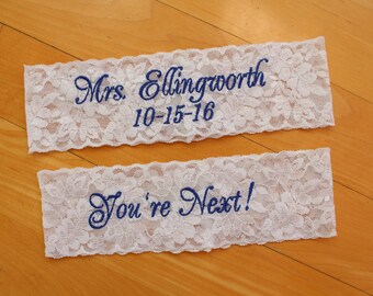 Personalized Wedding Garters, Garter For Wedding, Something Blue, Wedding Garter, Brides Garter, Bridal Gift, Keepsake garter, Toss Garter