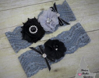 Gray and Black Garter, Gray Lace Garter,Stretch Lace Garter, Bridal Garter, Vintage Garter, Lace Garter, Prom Garter, Wedding Garter,