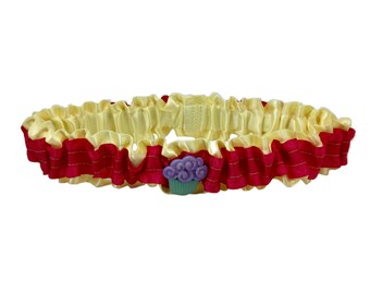 Pink and Yellow Satin Cupcake Garter - Easter Engagement Garter, Bachelorette Party Garter, Cute Lingerie, Purple and Green Cupcake Charm