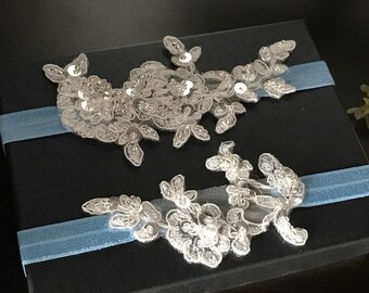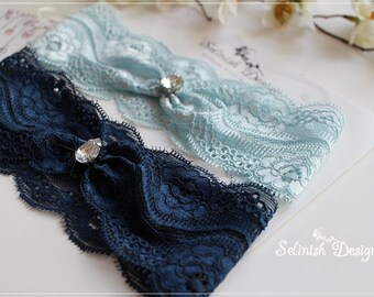 Blue Lace Garter, Something Blue Garter, Wedding Garter Set, Lace Garter,Bridal Garter, Blue Garter, Baby Blue Garter, Navy Garter-G173blues