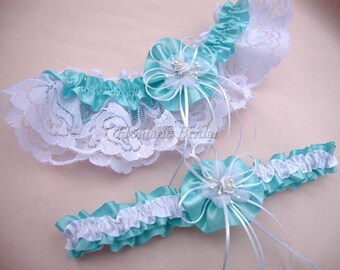 Garter set, Aqua Garter Set, Bridal lace garter set