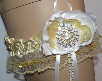 IVORY satin RHINESTONE garter