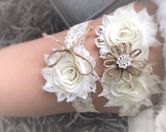 Burlap Wedding Garter, Garter Set, Wedding Garder, Burlap Bow Garter,Burlap Flower Garter, Toss Garter, Burlap, Rustic Garter, Ivory, Garder