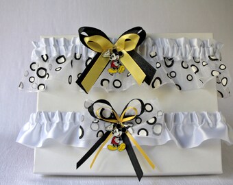 Polka dot garter set, Custom black and white Disney garter, Wedding garter set, Mickey garter, Wedding polka dot garter set, Garter prom